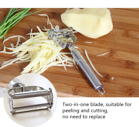 - Kitchen Winners Stainless Steel Dual Julienne & Vegetable Peeler allows you to prep food for the most delicious meals you have ever had with precision. The peeler side efficiently and precisely peels vegetables like potatoes, carrots, cucumbers, zucchinis, and even the dreaded skin of the butternut squash!